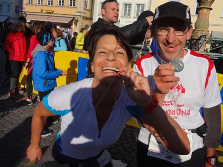 Harald + Anne mit Biss in die "zugeflogene" Medaille: "Mei war des schee!"