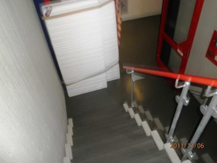 Dicke Polster an den Wänden im Treppenhaus |
