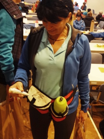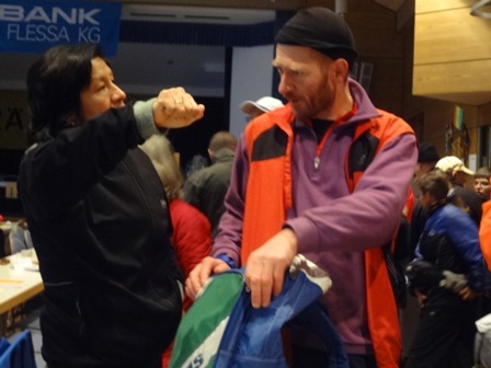 Schnell die Jacke ins Gepäck-Aufbewahrungs-Zelt für hinterher |