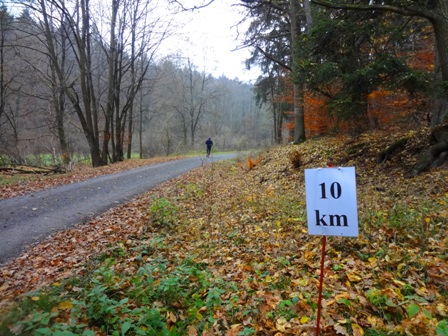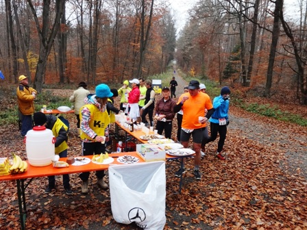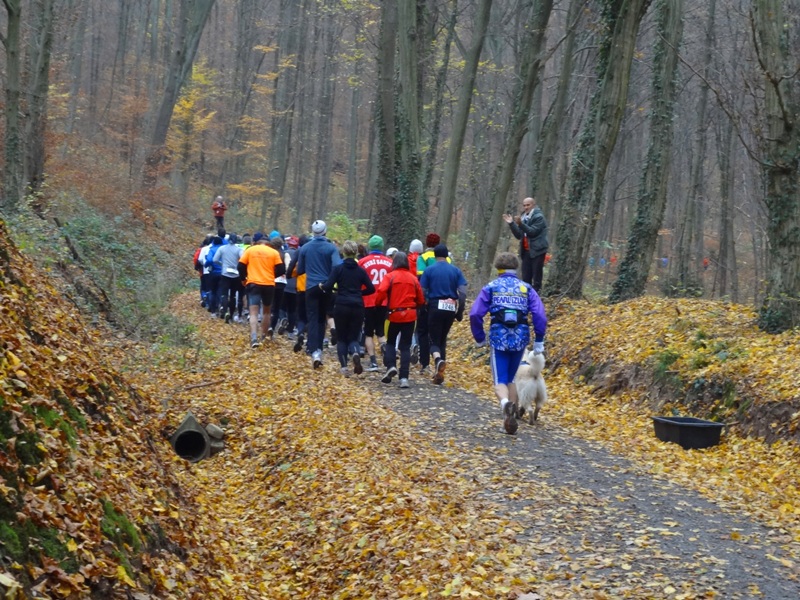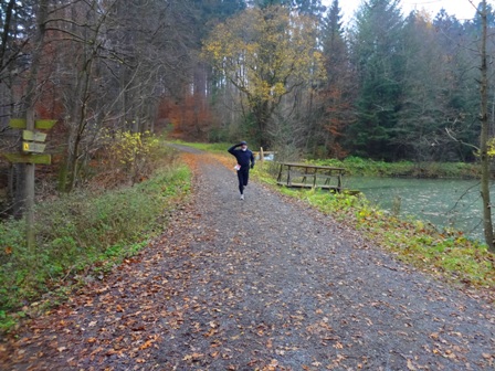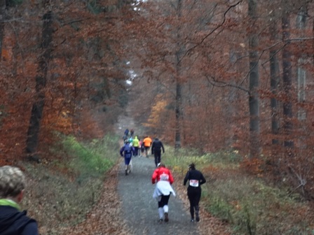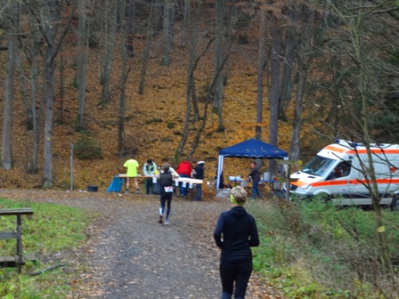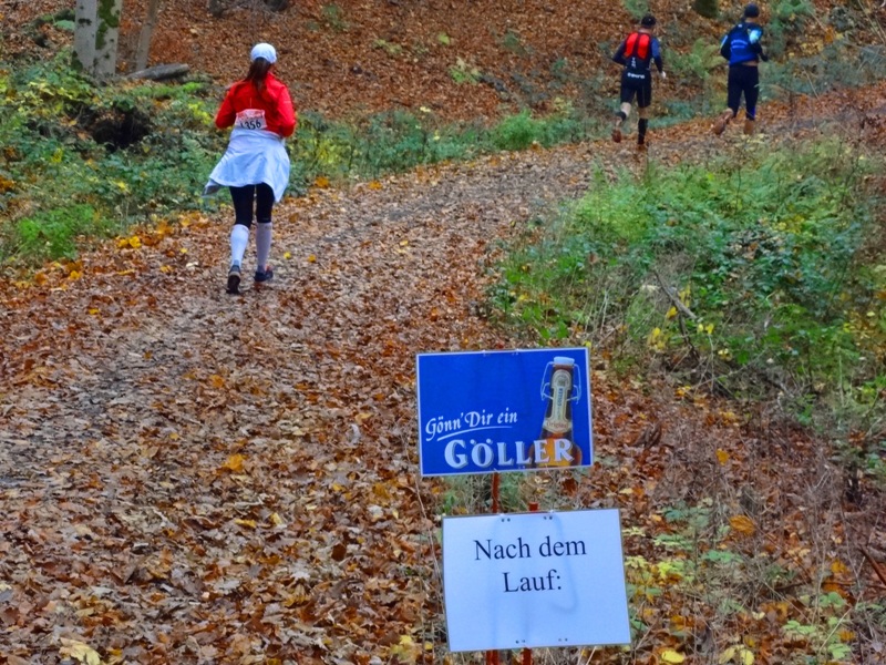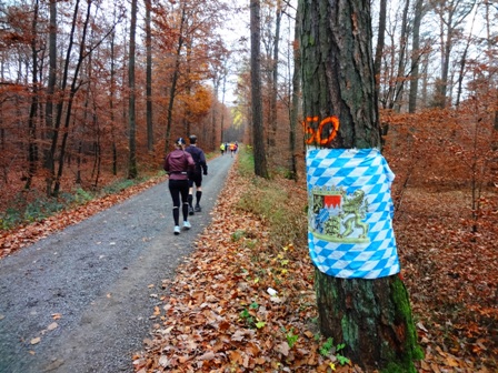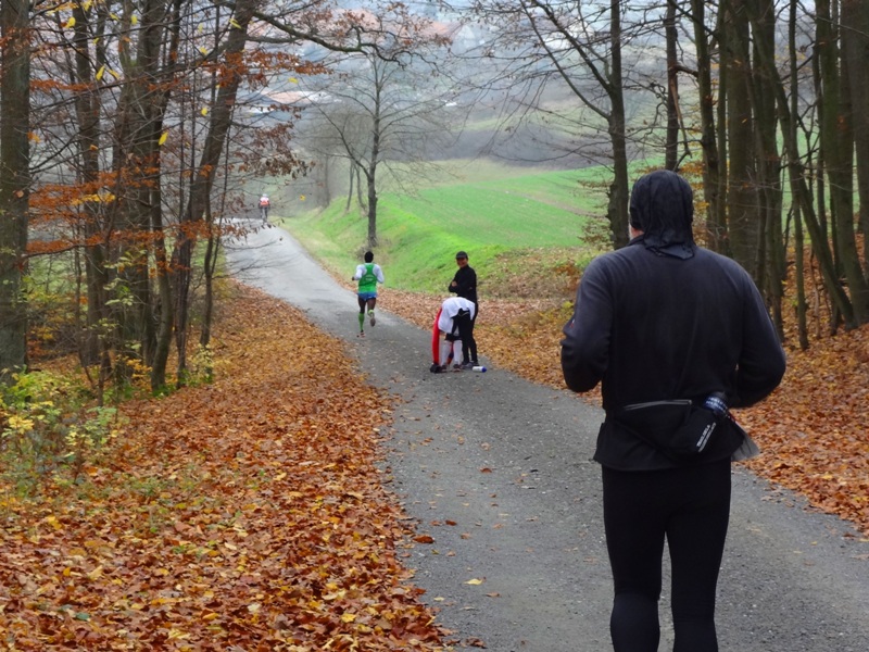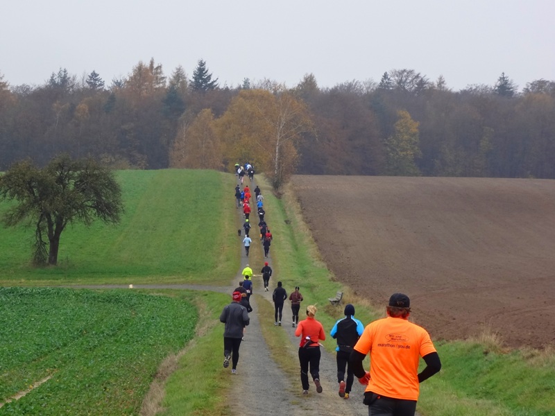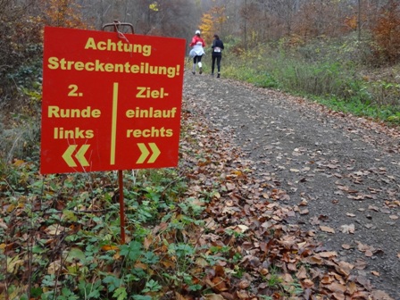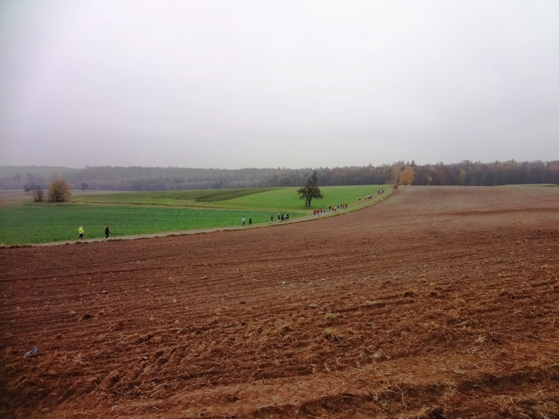 Hier kommen uns die schnelleren Läufer 100m entgegen, schon 3km