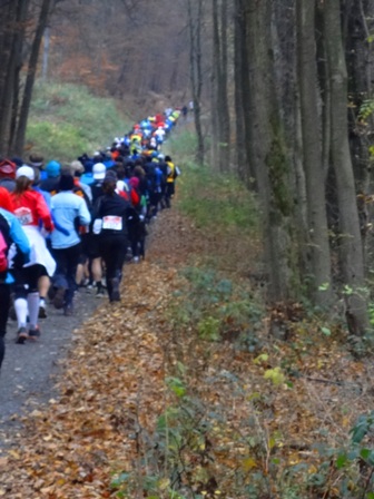...exakt 222 Marathonläufer. Alle laufen vorwärts, nur einer