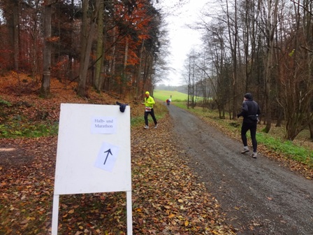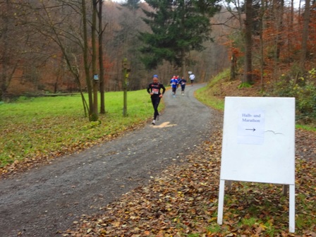 Der grüne Pfeil soeben, das war der Führende Halbmarathonläufer.