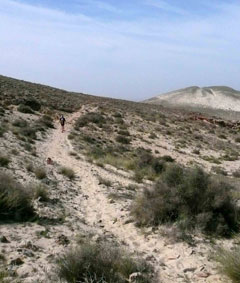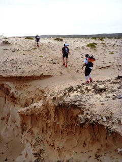 hinterlistigen Dornensträuchern und durch ein ausgetrocknetes Flussbett.