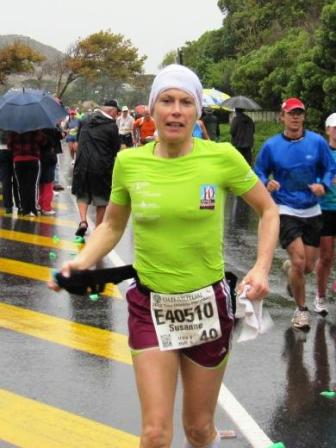 Dieser "Vorbereitungslauf" für meinen 1. Rennsteig-73km wird ganz anders als gedacht. Südafrika, hier am Kap der Guten Hoffnung trifft sich der Indische Ozean mit dem Atlantik. So verläuft auch der Ultra Marathon. 9.185 Startern (+16.000 Starter HM Start: 6:00 h) sind ein super Eindruck, das sorgt für gute Stimmung. Nach 16 Stunden Anreise ist gerade noch Zeit, um die Startunterlagen im Good Hope Centre abzuholen und gleichzeitig eine riesige Laufsportmesse zu besichtigen. Mit Glück muss ich nicht in die Warteschlange von 3h, ein Guide führt mich direkt zum Büro der Ausgabe. Viel Zeit bleibt nicht, denn der Start ist am nächsten Morgen um 6:25 Uhr. Das Gute ist in Südafrika: Keine Zeitverschiebung. So ist es mit dem Schlaf leichter und kein Problem, mich sehr früh schon wieder auf den Weg zu machen. Leider spielt Petrus nicht so recht mit: Wir werden immer wieder geduscht bei max. 13°C und sehr windigem Wetter. Das Wasser steht in den Schuhen und die Kleidung klebt am Körper…und das stundenlang. Also Augen zu und durch.