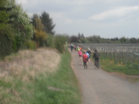 KM 13, es geht immer noch prima. Erstaunlich! Irgendwann ist Michael weg, das ist ihm zu schnell, weil wir gaaanz langsam zulegen. Immer unter der Beobachtung meines heutigen persönlichen Coaches, Erwin. Eh, wo ist er denn wieder? Ah, in den Weinreben, Foto machen.