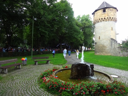 Kneipen ab und zu besetzte Fußgängerzone. Dann noch mal rauf, und