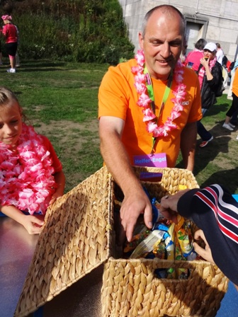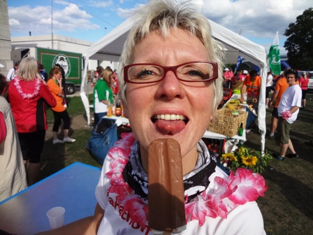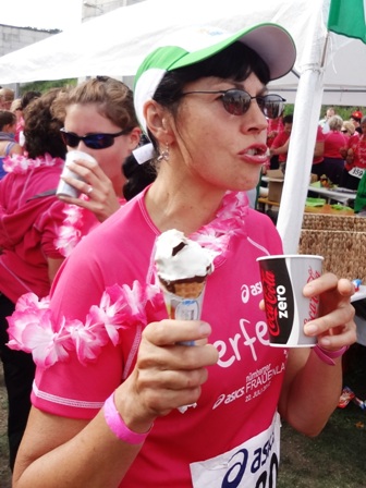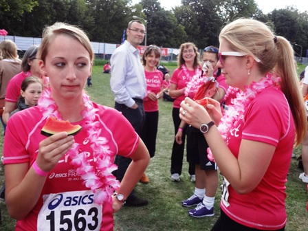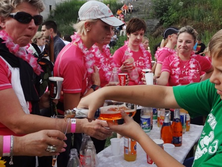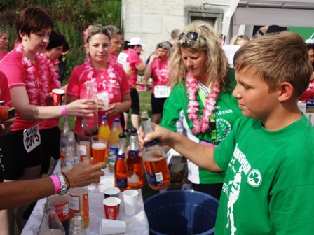 Es gibt Piccolo-Fläschchen unterwegs, im Ziel Karotten, Kuchen, Melone