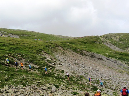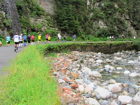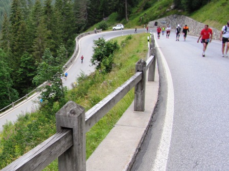 jetzt so steil, dass viele Läufer aus dem hinteren Feld die Steigungen