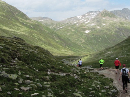 vollen Einsatz. Nach dem Sertigpass geht es unentwegt bergab. Plötzlich