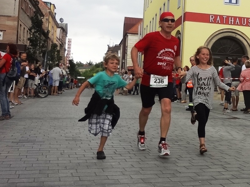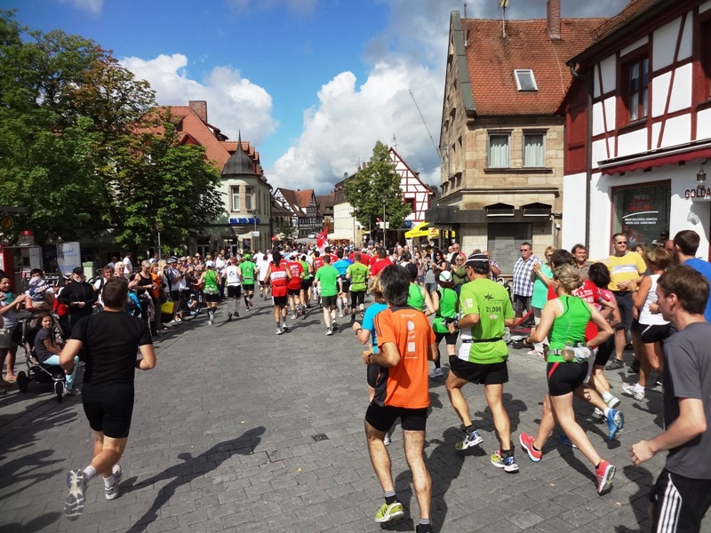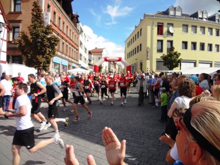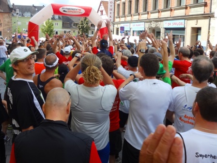 ...und los laufen sie über den Marktplatz |