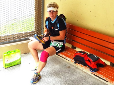schwer! Kurz danach die km40-Getränke. Die triefend nassen Schuhe