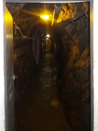 Als erstes Highlight laufen wir bald durch einen engen Tunnelgang.