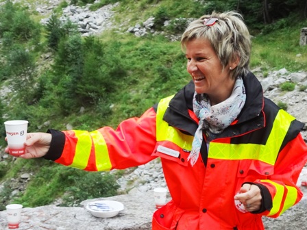 Brigitte von der Organisation, denn anfangs waren es weniger km,