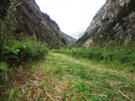 bleibe 3km bei den Letzten, dann gehe ich langsam weiter, in die enge Gondoschlucht. Jahrhunderte gab es hier keinen Weg. Wir laufen