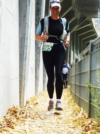 vor mir taucht wieder eine Läuferin mit Stöcken auf... |