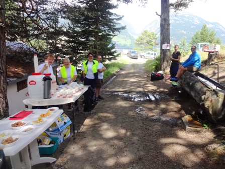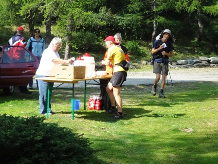 Km23: Oben angelangt ist es frisch aber nicht kühl. Ich nehme 4 Becher