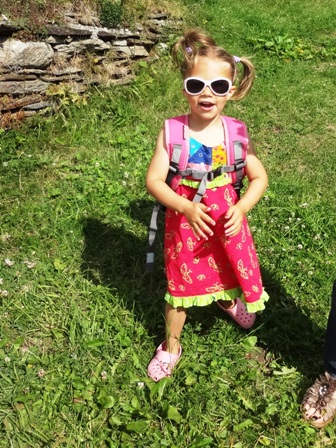 Sonnenbrille. Ein (folgenloser) Bergunfall. An der Tränke nehme ich einige Schluck Bergwasser,