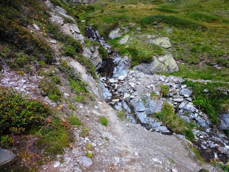 Das rutschige enge Stück Fels ist der Weg |