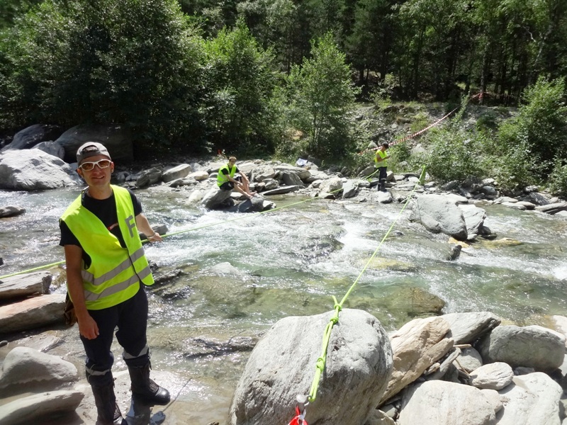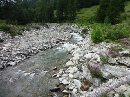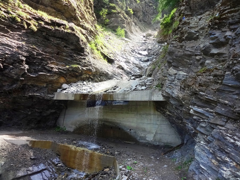 (in Gedenken an eine fortgerissene Brücke) 1m tief durch den Wildbach.