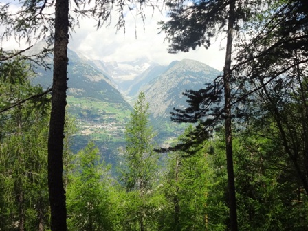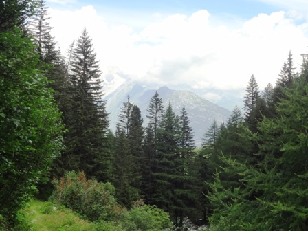 Gedanken, viele Bäume, Weitblick in die Alpengipfel.