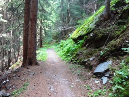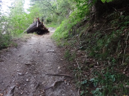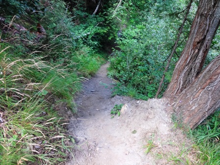 dass ich stets bremsen muss. Und sehr uneben, mit Wurzeln und