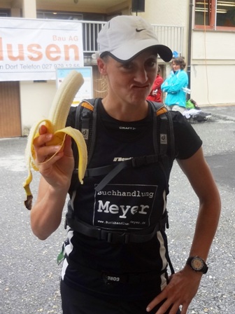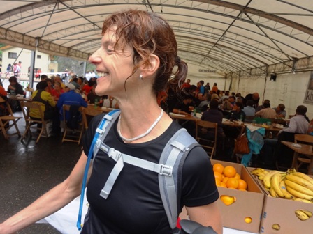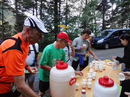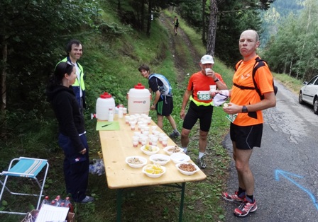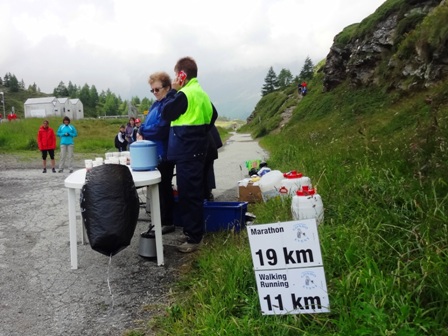 Oben bei km33 gibt es wieder ein paar Becher rosa Isogetränk. Essen mag