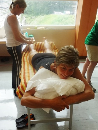 Lustiges zu erzählen. Meist vom Laufen. Dann ab unter die Dusche… und zur Massage