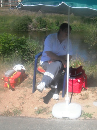 Auch die Rettungs-Helfer suchen Schatten |