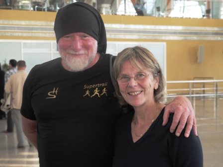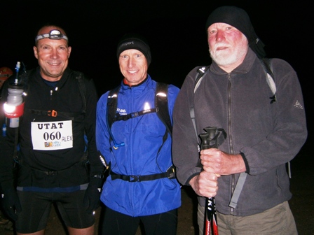 der andere ein Franzose mit einem Marathon des Sables Buff auf dem Kopf.