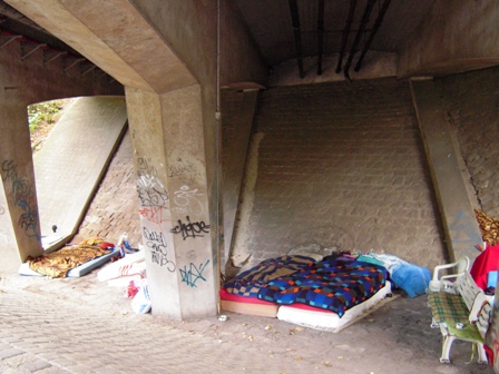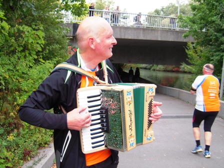 Endlich wieder da, der Akkordeon-Mann vor der Brücke |