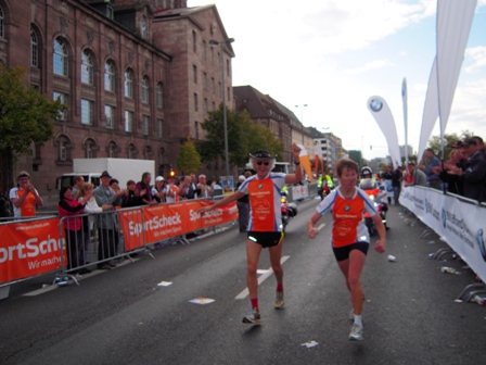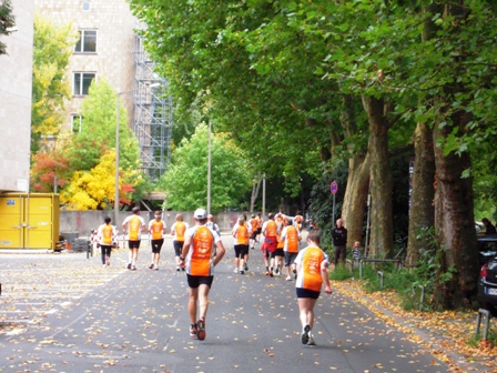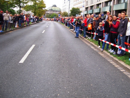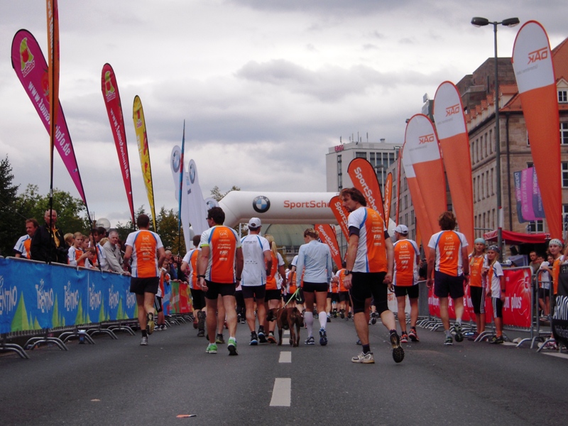 Links die ins Ziel laufenden Überrunder, rechts die Langsameren |