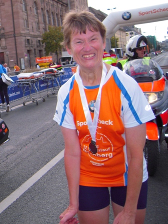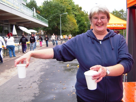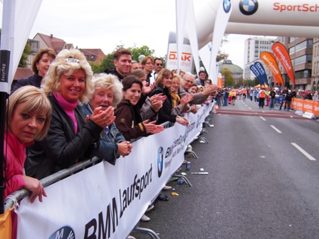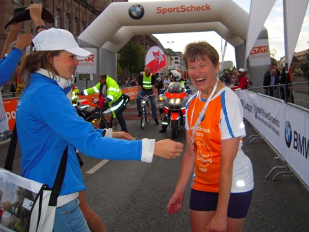 Ulla genießt den tollen Empfang bei ihrem Zieleinlauf sehr |