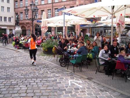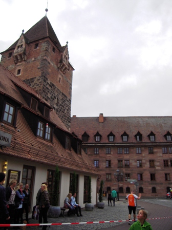 Dahinter ein Wahrzeichen Nürnbergs, der Versicherungs-Turm |