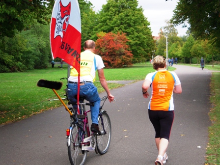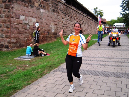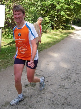 uns zu, sie wird es schaffen! Ullas Laufstil ist behinderungsbedingt