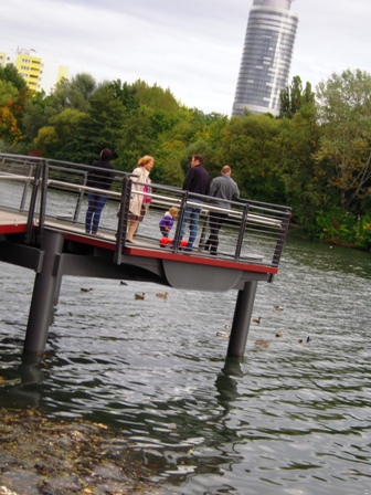 Wieder vorbei am Boulevardsteg, der im See steht.