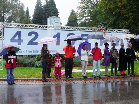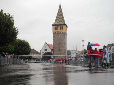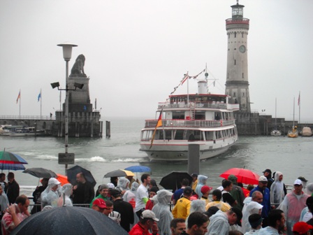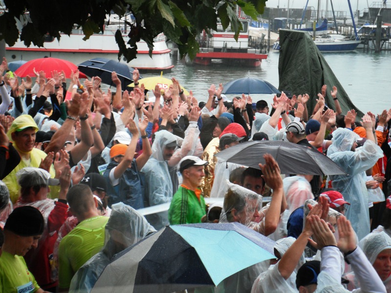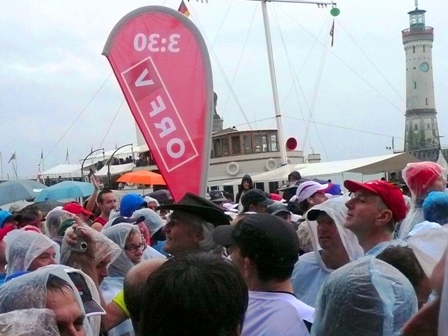 Km2: Regenschirmparade beim Verlassen von Lindau |