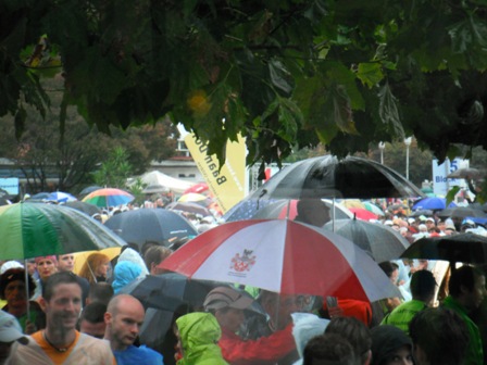 Km10: Viel Publikum trotz Regen beim Staffelwechselpunkt |
