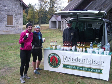 Im Ziel!  - Armin empfängt uns persönlich und lädt uns ein ins Zelt des SV Schönheid zu kostenlosem Eintopf und einer Magnetfeldanwendung für schnellere Regeneration