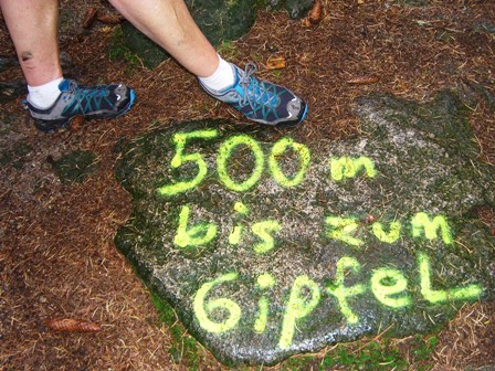 Nur noch 500 harte und steinige Meter bis zum höchsten Punkt des Steinwalds: Platte (946 m)
