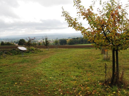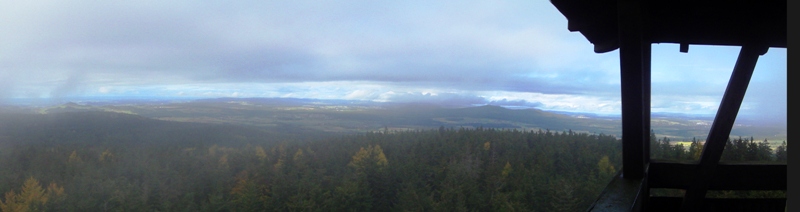 Bei gutem Wetter reicht der Blick nach Osten übers Stiftland bis weit hinein nach Böhmen, und zum Tillenberg (Staatsgrenze), dem geographischen Mittelpunkt Europas