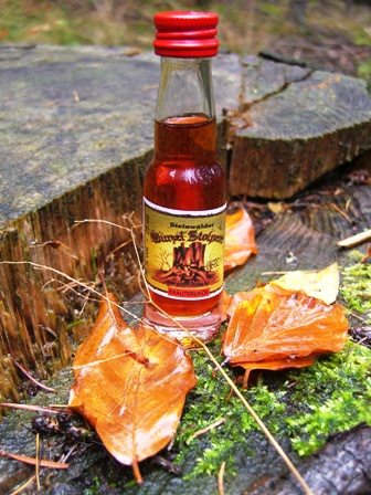 ...den „Wurzelstolperer“ (aus Kräutern des Steinwalds destillierte Medizin zur äußeren und inneren Anwendung)
