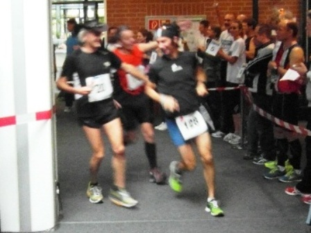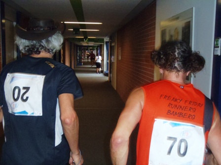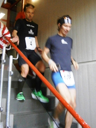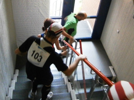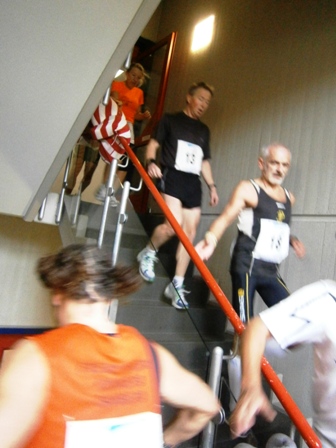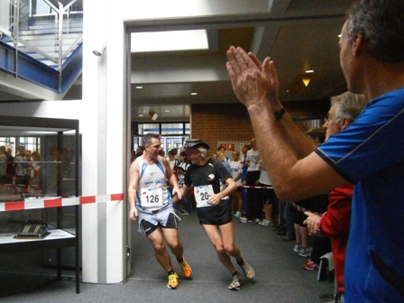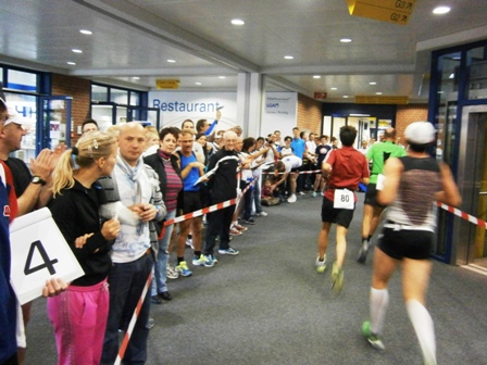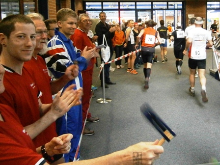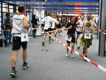 Nein: Keine stickige Luft, kein gefährliches Laufen im Treppenhaus. Auch nicht enge Flure, und langweilig ist es schon gleich gar nicht.  - Im Gegenteil, es ist ganz schön was geboten: Unterwegs gibt es Samba, Radio-Moderator, kameradschaftliches Schulterklopfen, immer nette Worte von-Läufer-zu-Läufer und alle 800m gibt es Publikum. In der Staffel macht das besonders Spaß.