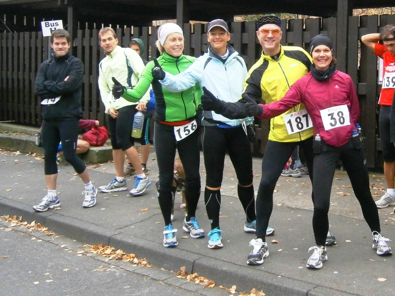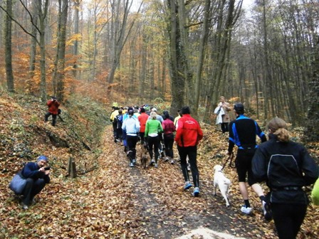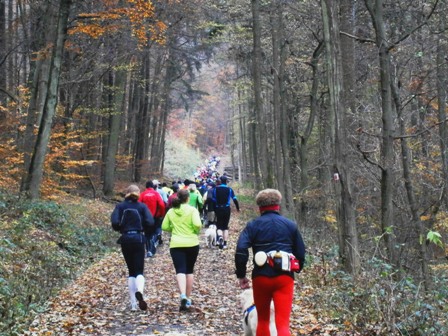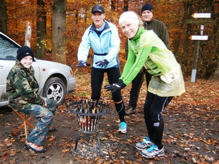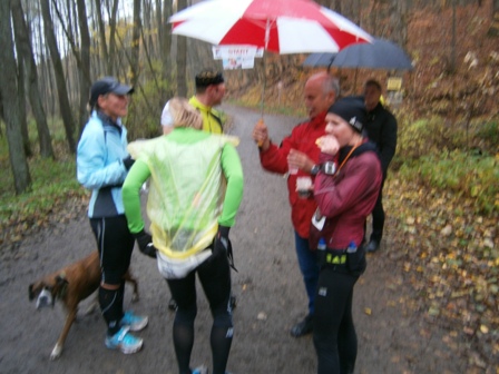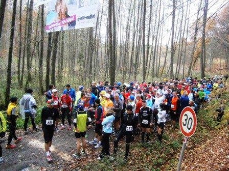 11.00 h: Alle Marathonis stehen bereit, mitten irgendwo im Wald |