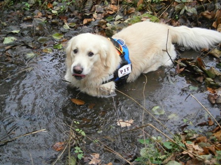 Herrchen + Hund nass im Ziel... |