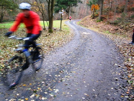 Schon kommt uns das Führungs-Bike entgegen... |
