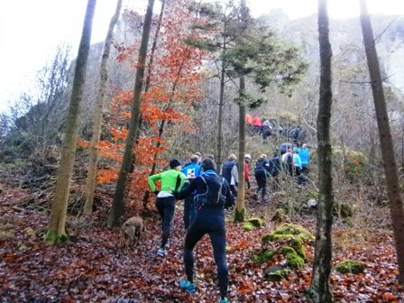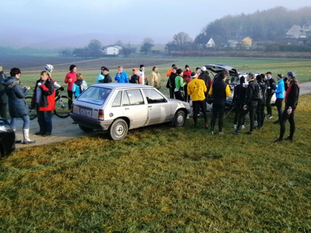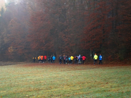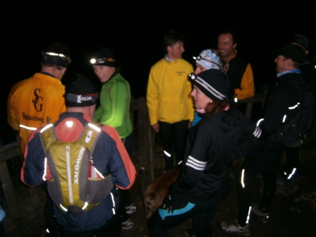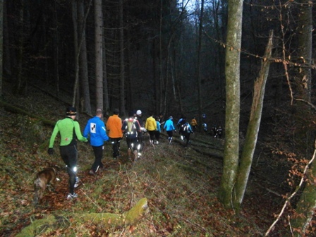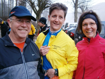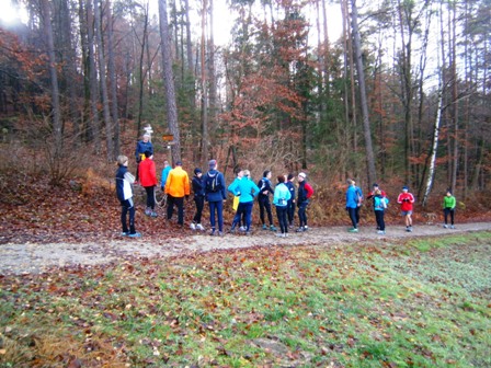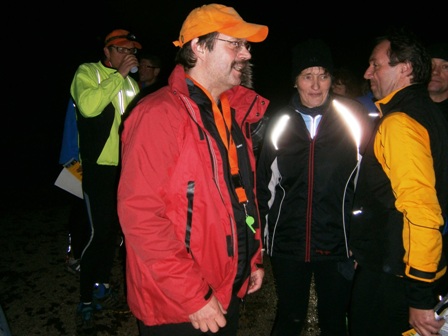 Läufer, Helfer + Hund am Parkplatz Freibad Streitberg: Los kann