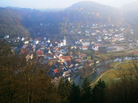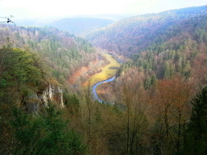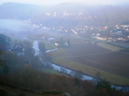 Weiter Blick ins morgenneblige kleine Wiesent-Tal |