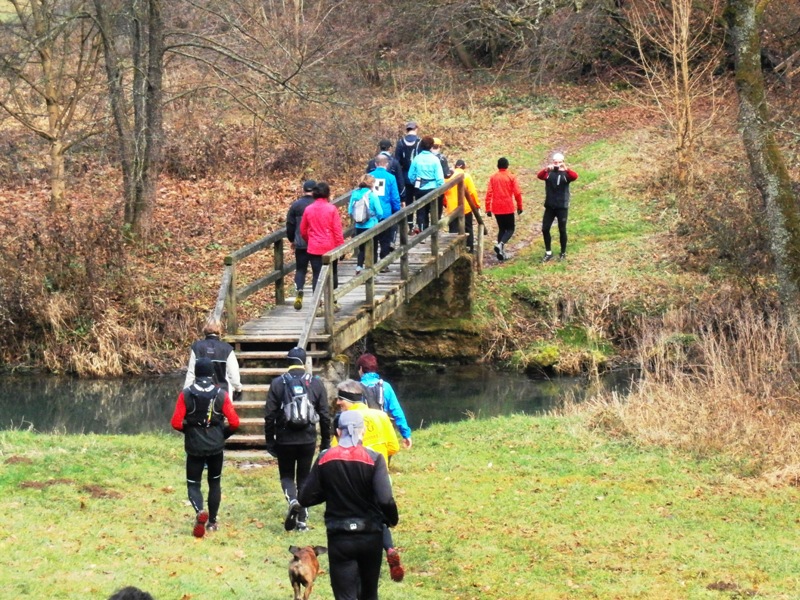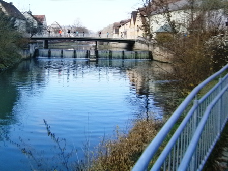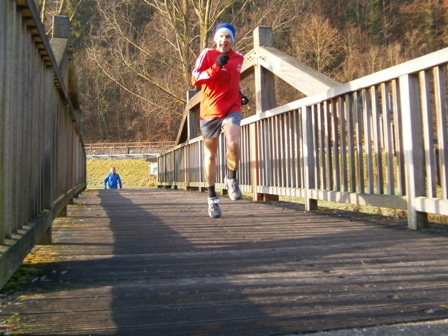 Alex sprintet über die Wiesent-Holzbrücke... |