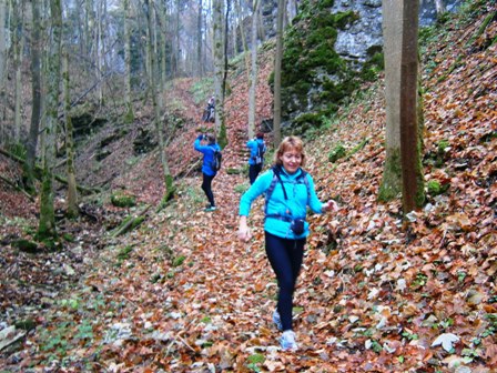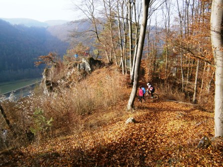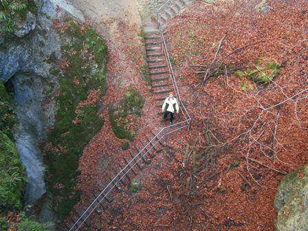 Weiter runter auf rotbraunem dicken Laubteppich |