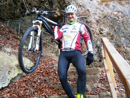 ...diesmal mit Treppen (Auch unser Radler muss absteigen) |